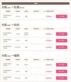 関空~仙台/福岡/長崎/宮崎/鹿児島: 2990円~