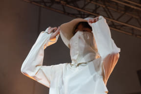 顔全体をメッシュで覆うUVカットウェア、俗称「不審者パーカー」。ルーツは虫よけ作業兼アウトドアウェアであり、顔をメッシュで隠しつつも内側からの視野性はよく作られている。
