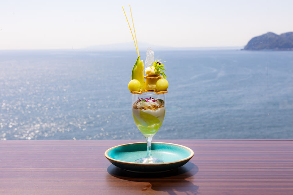 ホテルニューアカオ、静岡県産マスクメロン使った初夏限定パフェ。絶景カフェ「花の妖精」で提供