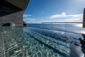 カフェは相模灘に面しており、クラシカルで落ち着いた雰囲気の店内では海と空のパノラマを一望。パフェの提供時間は、ティータイムの10時~17時(16時ラストオーダー)。ランチタイムの11時~15時には、伊豆の旬の食材を使ったプレートやシーフードカレーなども味わえる。