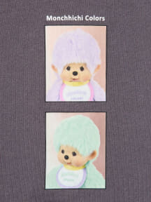 イラストではなくフォトグラフィックプリントを使用しているのもポイントで、瞳がブルーだった1974年の誕生初期のモンチッチぬいぐるみや仲間たち大集合バージョン、平成に誕生したベビチッチやカラフルな毛色のモンチッチなど、レトロかわいいデザインが揃う。