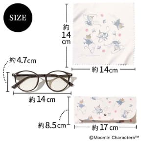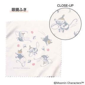 付属のケースと眼鏡ふきは、リトルミイのおちゃめな姿が愛らしいおそろいデザインとなっている。