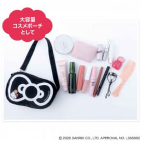 特別付録は、ハローキティのリボン型ミニバッグ。約17×6×12cm(幅×奥行×高さ)のコンパクトサイズながら存在感のあるデザインで、かさばるコスメやお出かけの必需品をまるっと携帯するのにちょうどいい。