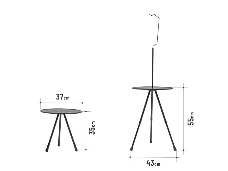キャンプはもちろん、インテリアとしての利用も想定したデザインと仕様で設計した。本体は屋内にもなじむマットブラック、天板の高さは35~55cmで無段階調整でき、チェアや身長に合わせて使いやすい高さにすることができる。