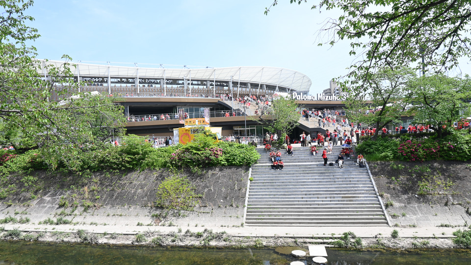 4月19日、「名古屋市瑞穂公園陸上競技場」(パロマ瑞穂スタジアム)で、6年ぶりにJリーグ公式戦が開催された。スタジアムは建替・改装による6年間の休業を経て復活したばかりで、1993年からこの地を本拠地としてきた名古屋グランパスエイトにとっては「6年ぶりの瑞穂帰還」となる。