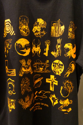ハウステンボスのシンボルタワー「ドムトールン」と初号機が並ぶモノクロのコラボロゴをモチーフにした、シンプルなTシャツ(4000円)、ステッカー(400円)、シートマグネット(1300円)、ショッパー(350円)も展開。