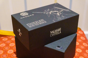 初号機の焼き印入り×シルバーの箔押しパッケージの特別仕様になる、文明堂総本店の長崎カステラ(2100円)は、手のひらより少し大きめ。カットするなら5~6等分、作品ファンへのお土産や自分へのご褒美にぴったりなサイズ感だ。