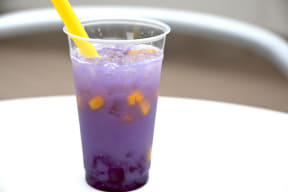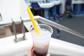 無事に惑星でのバカンスから戻ってこれたなら、「ソフトランディング」で販売中のギャラクティック・ブリーズ(750円)でホッと一息。バタフライピーシロップで銀河のような美しいブルーを表現しており、乳酸菌飲料とマンゴーで夏らしさもありつつまろやかな味わいだ。混ぜることで全体のカラーが変わり、目でも楽しめる1杯となっている。