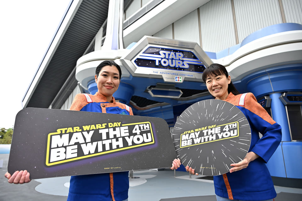アトラクション周辺では5月10日まで、「MAY THE 4TH BE WITH YOU」と書かれたフォトパネルが登場。こちらを手に、5月4日の「スター・ウォーズの日」をお祝いできる。