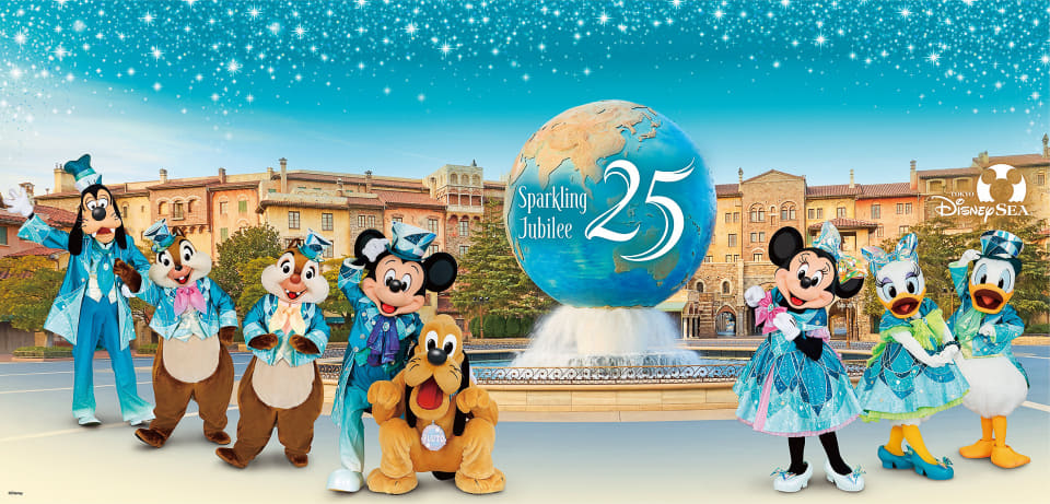 東京ディズニーシー開園25周年を記念したもので、車体にはアニバーサリーのテーマカラーである“ジュビリーブルー”をベースに、25周年コスチューム姿のディズニーの仲間たち、そして東京ディズニーシーのシンボルであるアクアスフィアやプロメテウス火山などが描かれる。