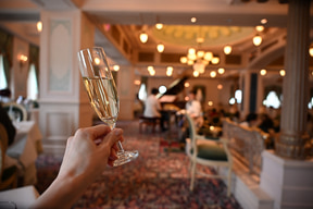 レストラン利用後は、「テディ・ルーズヴェルト・ラウンジ」へ。こちらで、スパークリングワインなどワインを飲みながらゆったりと食後の時間を過ごすことができる。もちろんソフトドリンクもあるのでご安心を。