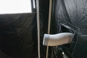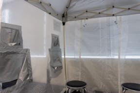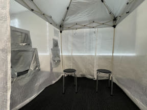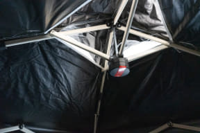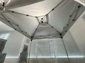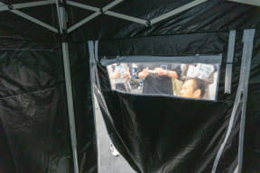 屋外用は、同社が培ってきたレジャー用品のノウハウを活かした遮光率99.99パーセント、UPF50+のブラックコーティング生地を採用しており、スポットクーラーを併用することで外気温より約-6度の涼しい空間を実現する。