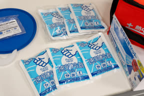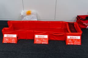 あわせて、防災士が監修した1人用の「熱中対策セット」(2980円)も紹介された。ショルダーバッグの中に、衝撃を与えるとキンキンに冷えるアイスパックやブルーシート、対応マニュアル、消毒スプレーなど、初期対応に必要な最低限のアイテム19点がまとまっている。