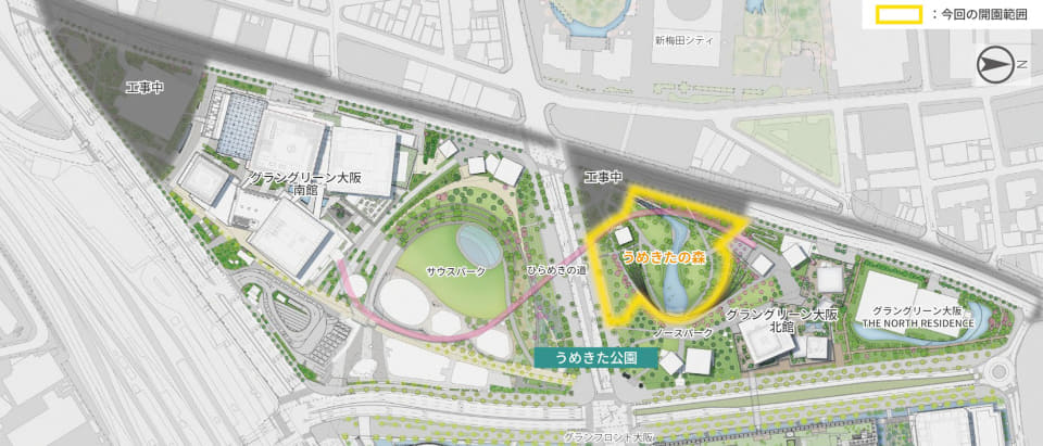 グラングリーン大阪「うめきたの森」が11月20日に早期開園。南北街区つなぐ「ひらめきの道」も全面開通へ