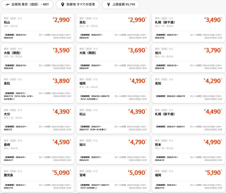 ジェットスター、国内14路線が片道2990円~「スーパースターセール」はじまる。GW最終日~7月搭乗分