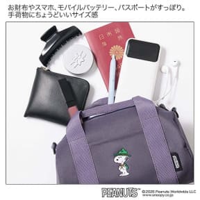 登山する「スヌーピー」のミニボストン付録、オトナミューズ 7月号増刊。身軽に動けるショルダーストラップ付き