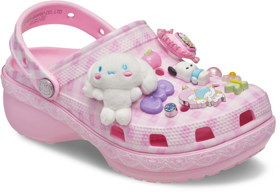 クロックス、新作サンリオコラボ。19個のジビッツチャーム付きギンガムチェック柄など