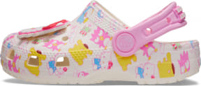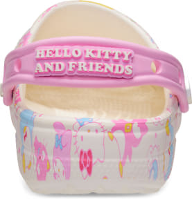 「ハローキティ アンド フレンズ パステル クラシック クロッグ」(大人向けサイズ:9900円、キッズサイズ:7700円、トドラーサイズ:7150円)は、バッドばつ丸やタキシードサムも含むサンリオキャラクターズ大集合のビジュアル。