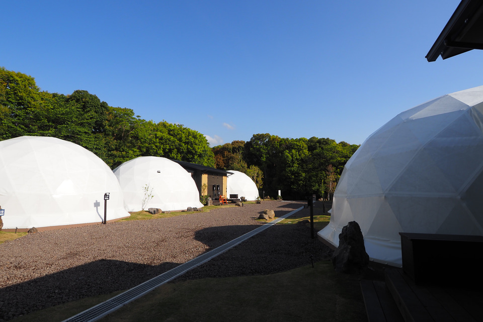 4月27日開業のグランピングエリア「GRAX EARTH FIELD(グラックス アース フィールド)」は、32サイトのドームサイトからなるグランピング施設。エリアは「ガーデンエリア」「スカイビューエリア」「ワイルドウッドエリア」の3種類に分かれており、それぞれ雰囲気が異なる。一部のサイトでは焚き火台を設置しており、必要な場合は予約時にリクエストするのもお勧めだ。