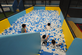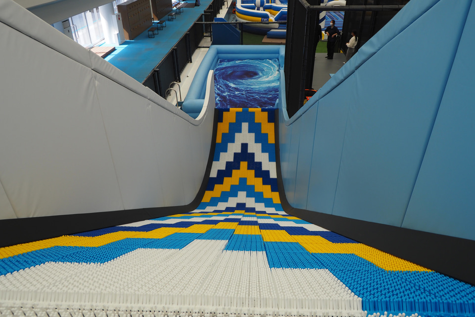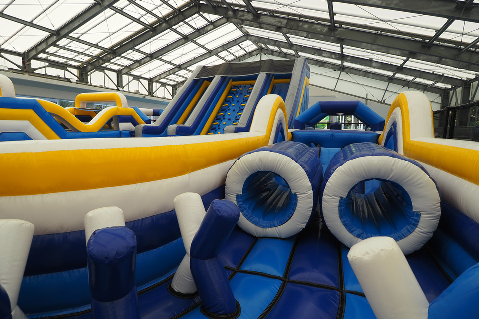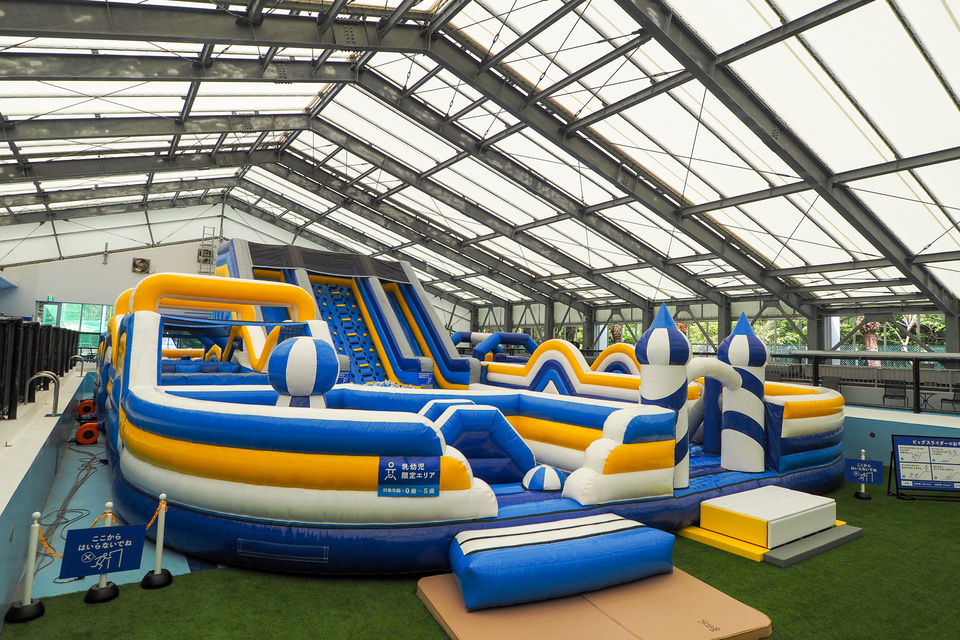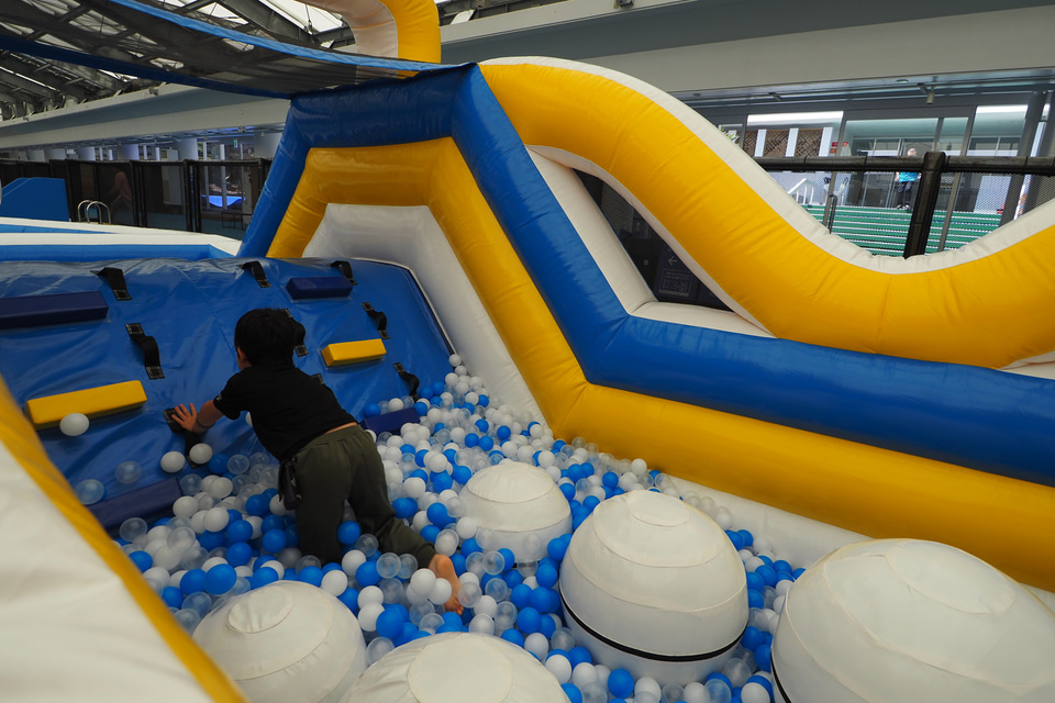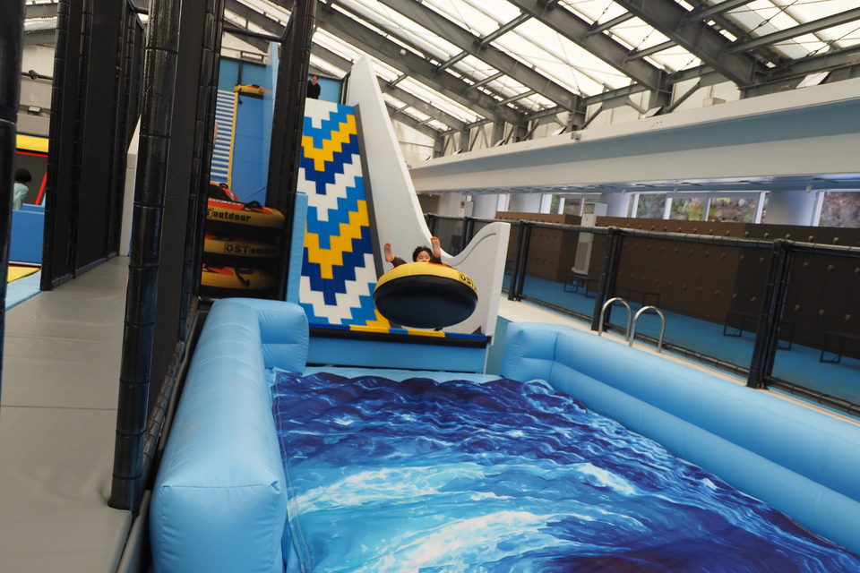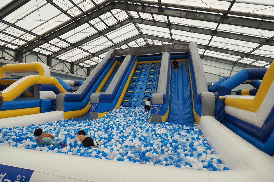 屋内ではエアアスレチック、トランポリンパーク、チューブスライダー、ボールプール、キッズスペースを用意している。雨の日でも思いっきり体を動かして遊ぶことができるようになっており、しっかり時間をとって遊びたい。身長120cm以上からのチューブスライダーは大人も楽しめる。