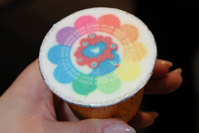事前予約制のイートインについては、「バーガーとスイーツのプレートがあり、どちらもオリジナルメニューでオススメです。アイスクリームが入っているマグカップやミャクミャクのコースター、チャームも付いていて、楽しい思い出をご自宅にお持ち帰りいただけます。これはテイクアウトにはないので、ぜひ店内で召し上がっていただきたいですね」とのこと。今もらえるチャームはアクリル製のキーホルダーだが、このデザインなども期間限定品で、今後半年の間に内容を変えていくそうだ。