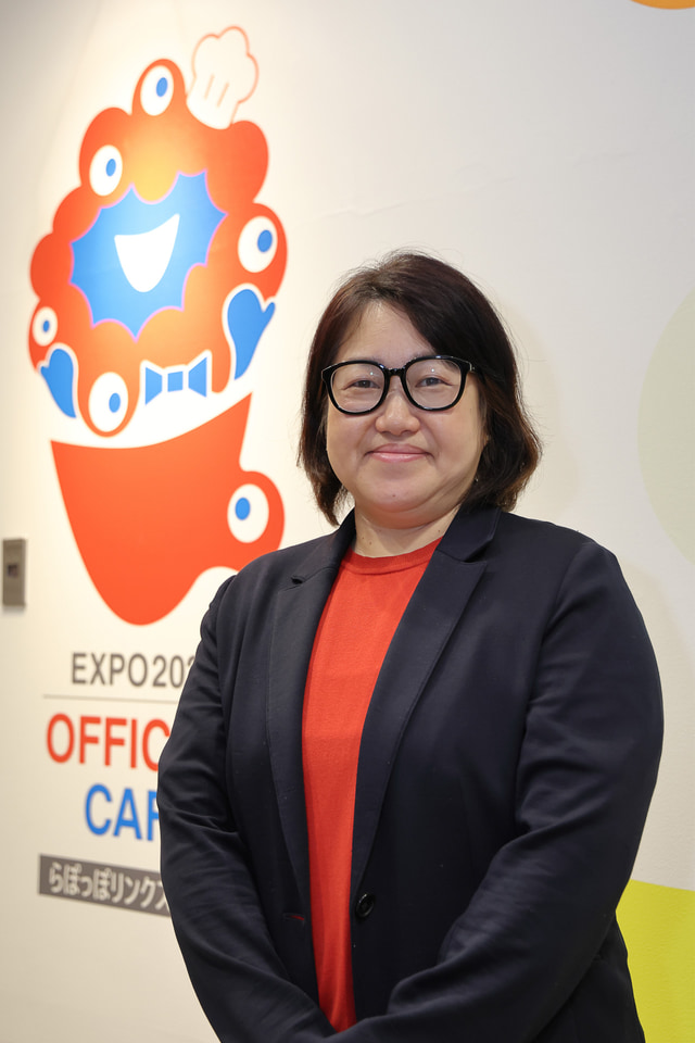 EXPO2025オフィシャルカフェ らぽっぽリンクス梅田店のオープンについて、らぽっぽを運営する白ハト食品工業 6次化マーケティング開発本部/広報クリエイティブ 執行役員副本部長の菊池洋子氏にお話を伺った。