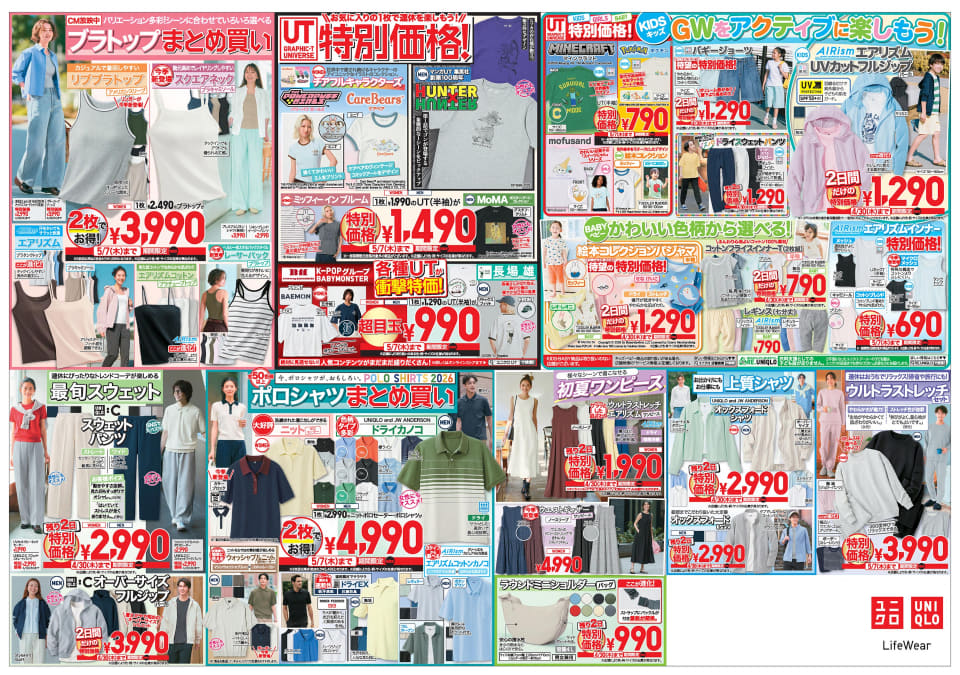 ユニクロは、現在開催中のGWセール「休みイロイロ!服はユニクロ!きたぜ!ゴールデンウィーク」の第2弾チラシを公開した。