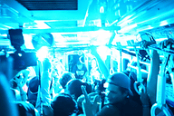 先頭から2番目(先頭の10号車は関係者控え室)の9号車では、DAISHI DANCEが卓で実際にDJをしていて、CYBERJAPAN DANCERSがセクシーなダンスパフォーマンスを披露しているコーナーが設けられていた。ただ、横幅は約1.5mしかないため、まさにギュウ詰め状態。多くの人がこの車両を目指そうとしてしまうため、車両間では係員が入場制限をしていた。残念ながら多くの参加者はこの場所を見ることはできなかったことと思われる。観覧できる先頭はいわば参加者が身体をぶつけ合う「モッシュピット状態」で、記者もかなり苦労してたどり着いたのだが、撮影機材が壊れなかったのが不思議なほどのもみくちゃの状況。見られなかった人のため、せっかくなので写真を多めでレポートしておく。