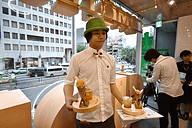 営業時間は、月~金曜日は15時~21時。土日祝日は12時~21時で、共にラストオーダーは20時30分。1階のカウンターで注文したあと、2階のスペースを利用できる。2階は、テーブルが8カ所あるスタンディングスタイル。表参道交差点の往来を眺めながら、今はやりの「ちょい飲み」を楽しめる。