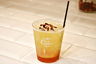 最近、カフェなどでもはやっているレモネード。レモンの爽やかさとミントのすっきり感、ハードシードルのフルーティーな酸味と香りが混ざり合うバランスの取れたカクテル(販売日:7月24日~8月6日)。