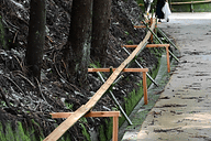 古来的な木造の吊り橋で、とにかく橋板の隙間が大きいことが特徴。しかも、カズラの弦を組み合わせて固定してあるだけ(のように見える)ので心許ないうえ、やたら揺れる。入場料は大人550円で、一方通行となっており、ほとんど人は橋の両側に捕まりながら渡っていた。この入場は「日没まで」とされており、夜間の19時~21時にはライトアップも行なわれている。