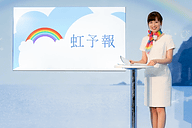 イベントでは最初にフリーアナウンサーの皆藤愛子さんが登場。虹ができるメカニズムや虹予報の見方の説明に続いて、記念すべき第1回の虹予報を伝えた。