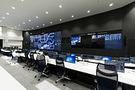管制・制御室の交通管制用大型ディスプレイは、5.5×17m(縦×横)。55型液晶ディスプレイを8段14列の112面。下部にCCTV用32型ディスプレイが20面並ぶ。