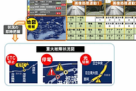 交通管制用ディスプレイは、路線図に事故や渋滞などのイベントを表示することはもちろん、現地カメラ映像、走行ビデオ、気象情報、非常電話受付状況、航空写真、ジャンクションの3Dマップ映像など、さまざまな情報を表示できる。