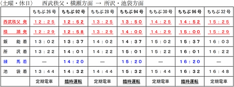 【記事修正:2016年3月28日】西武鉄道のニュースリリースに発表後一部訂正がありました。それを受けて本記事も、西武池袋線臨時普通電車の土曜・休日の下り、14時28分西武秩父駅発の飯能駅到着時刻を「16時21分」から「15時21分」に修正しました。