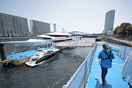 SR310は、THE CRUISE CLUB TOKYOがある天王洲アイルのシーフォートスクエアを離れ、京浜運河を5ノット(約10km/h)でゆっくりと南下。運河などで係留している船がある場所の近くを通る際は、波を立てないように最徐行するのがマナーだという。