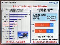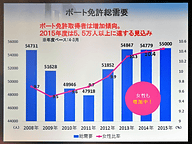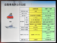 ボート免許取得者数は増加傾向にあり、2015年度は5万5000人以上になる見込み。そのなかでも女性の比率が上がっており、現在は約1割が女性だという。自動車免許とボート免許との違いとして、取得できる年齢設定の違い、取得できるまでの金額や期間を対比し、自動車免許よりも取得しやすいとアピールした。