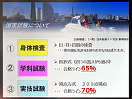 ヤマハボート免許教室では、「海の普通免許」と呼ばれる2級のボート免許を3日間で取得する通常コースの合格率は97%以上だという。さらに短期間で免許を取得できる「スマ免」というコースがあり、PCやタブレットを使い、eラーニングで学科を勉強する。オンライン講習を終え、実技講習に1日、国家試験に1日の2日間で取得するレギュラーコースと、実技講習半日、国家試験半日の1日で免許取得する1日コースがある。