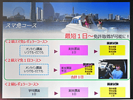 「選べる遊び」とは、マリーナごとに楽しめる遊びを具体的に提案する「海遊びプラン」を、インターネットや会報誌を通じて会員に紹介していること。現在、全国で約300コースを展開し、釣りやクルージングなど、好みに合わせた遊びを選ぶことができる。また、その土地ならではの遊び方を、クルージングのスケジュールや詳細なども合わせて提案している。都内のお花見クルージングや、小樽のカレイ釣り(4月~6月上旬)、湘南は江ノ島鳥帽子・裕次郎灯台クルージングに人気があるという。季節ごとに異なる遊び方も提案され、福井県の三方五湖での秋の紅葉クルージングが人気だという。