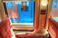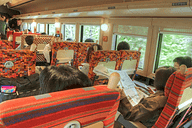 富士山ビュー特急は、富士急行創立90周年事業の第1弾として運行が開始された新型特急。デザインは富士急行線の観光列車「富士登山電車」を手掛けた水戸岡鋭治氏が担当、車室内は木の質感を活かした居心地のよい空間。大きく開かれた車窓からは、世界遺産富士山の雄大な姿を、まるで「額に収められた一枚の絵」のように眺めることができる。