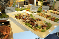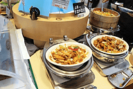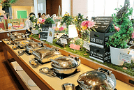 到着時刻は、ちょうどランチタイム。リゾートダイニング「フジヤマテラス」で人気のランチブッフェをいただいた。ライブキッチンでシェフが作るでき立ての料理を含め、約80種類のメニューが並び大満足の昼食となった。