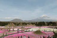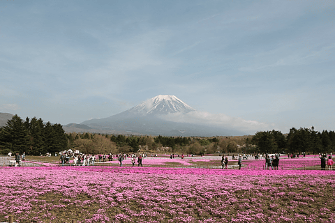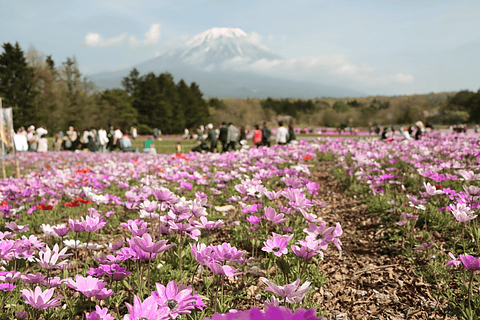 残雪の美しい富士山と芝桜の素晴らしい競演「富士芝桜まつり」
