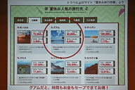 グアム政府観光局は「やりたかったんだな、これっ。」キャンペーンを進めており、これはクルーズフィッシングを楽しんだり、高度4200mからスカイダイビングをしたりといった、人々の心にある「やりたかったんだな、これっ。」をグアムでかなえようというもので、会場では「残念ながら180yrd以下の方は、海ポチャです。」と題した、ゴルフ場で海の向こうにあるグリーンへのショットに挑戦するという映像が流れた。