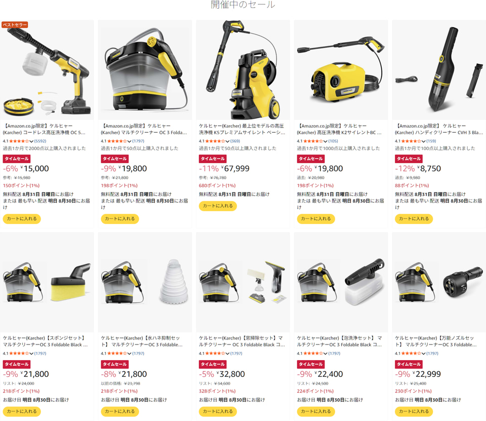 Amazon(アマゾンジャパン)は、スマイルSALEとしてケルヒャーの高圧洗浄機のセールを行なっている。期間は9月4日23時59分まで。