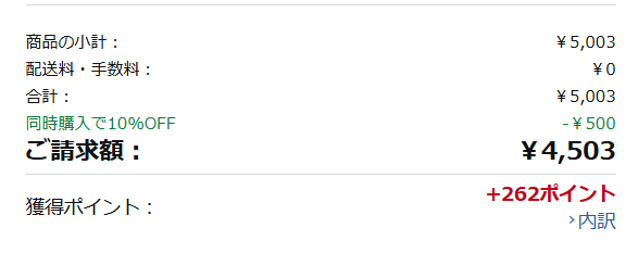 例えばアレジオン20(48日分)とアルガードクリアブロックZ(13mL)をまとめ買いすると5003円だが(3月18日時点)、キャンペーン適用でさらに10%オフの4503円になる。「注文を確定する」ボタンを押す前に、「同時購入で10%OFF」の表記を確認していただきたい。ただし、 Amazonマーケットプレイスでの購入は対象外 なので、出荷元/販売元がAmazon.co.jpになっていることの確認もお忘れなく。