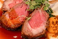 続いてパスタ料理2品とメイン料理4品です。パスタは、黒トリュフのスライスがこれでもかと添えられたラビオリ風のアグノロッティと、イカスミのガルガネッリです。アメリカでありがちな茹ですぎパスタではなく、絶妙のアルデンテに茹でられたパスタは、いずれも濃厚な味わいで、これまでアメリカで食べたパスタのなかでもトップクラスの美味しさでした。このパスタの味わいなら、アメリカのイタリアンもかなりお勧めできそうです。