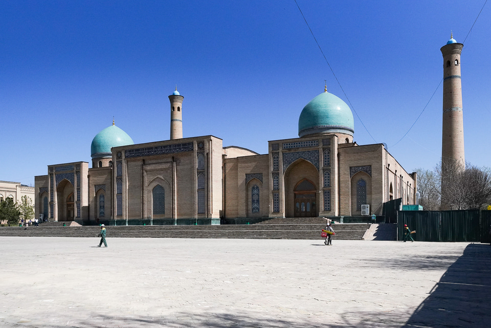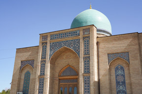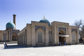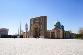 「ハスト(ハズラティ)・イマーム広場」(Karasaray Street, Tashkent)は、ウズベキスタンに入りまず最初に目にする歴史的なイスラム建築物になるはずだ。とにかくその巨大で美しい青い装飾に圧倒される。