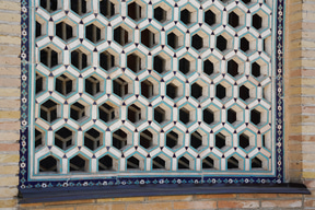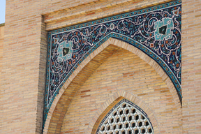 「バラク・ハン・メドレセ」ほか、モスクなどいくつかの建物から構成されていて、7世紀に書かれた世界最古といわれるコーランが展示される建物もある。こちらの室内は撮影不可だった。なおメドレセは神学校で、モスクはイスラム教徒が礼拝をする寺院のことだ。ミナレットと呼ぶ高い塔が脇に備えられていて、ここから礼拝時間を知らせる。