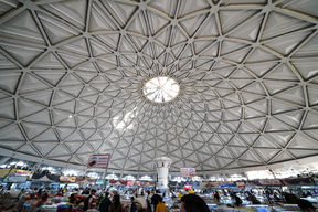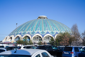 この市場は、特徴的な紋様が描かれた円形のドーム型をしている。タシケント周辺には1960年代から建てられたモダニズム様式の建築が多くあり、その1つとなっている。このモダニズム建築群に関しては、後ほどまとめて紹介しよう。