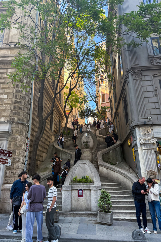 まずはイスタンブールの街を小高い丘から見渡せるガラタ塔へ。泊まっていたホテルの近くに、ガラタ塔方面につながる素敵な階段がありました。「カモンドの階段」という小さな名所です。